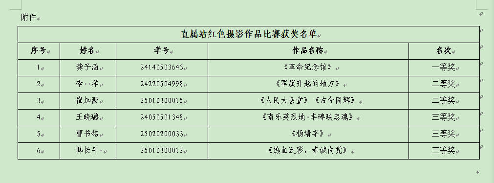 附件:直属站红色摄影作品比赛获奖名单
