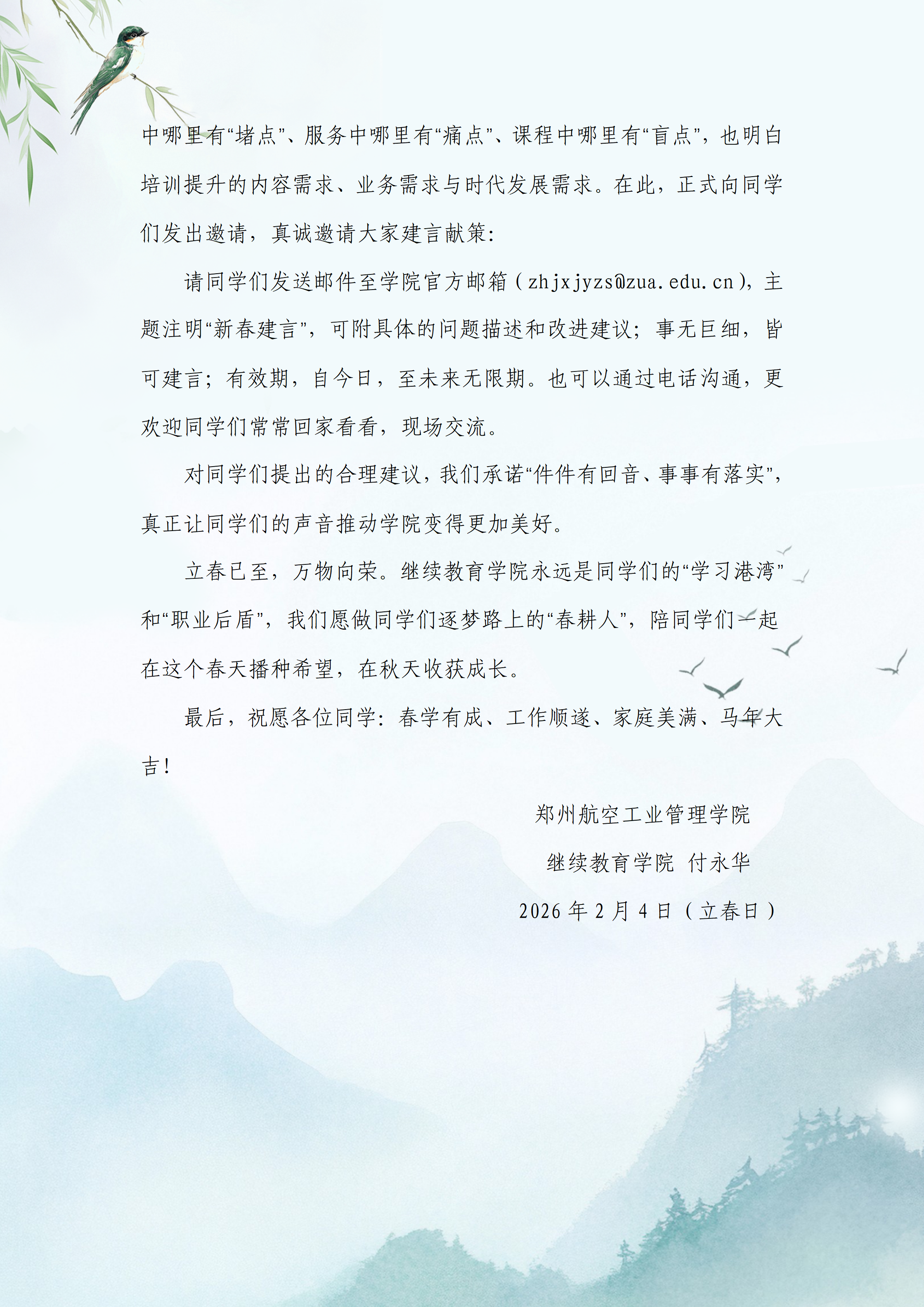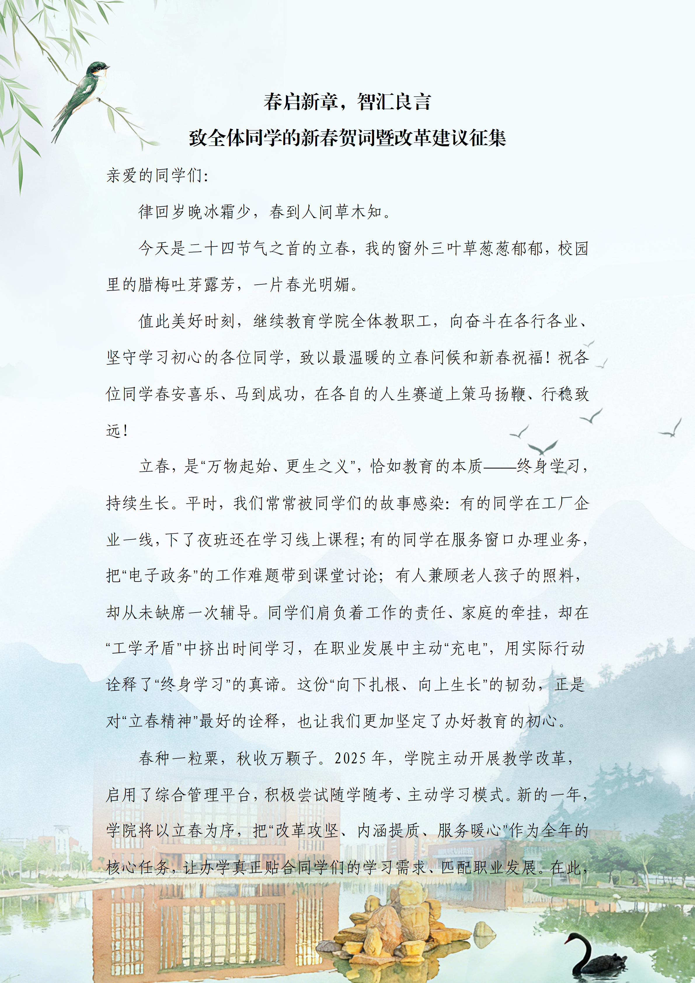 春启新章,智汇良言——致全体同学的新春贺词暨改革建议征集